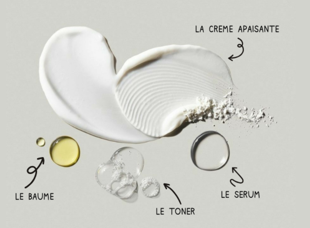 Nos formules privilégient des actifs doux, des textures réconfortantes et une approche respectueuse de la barrière cutanée, afin d’apaiser la peau sans l’agresser.